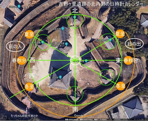 前々回には、倭迹迹日百襲姫命(やまととひももそひめ)は、時間を司る巫女だとか言ってました。前回には家屋文鏡には日時計が描いてあるとか言ってました。 今回は日時計が設置されていた場所が、見つかったとか言ってます。 吉野ヶ里遺跡の変な環濠集落 弥…